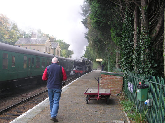 Signalman returning with full coal scuttle, Ropley, Watercress Line