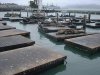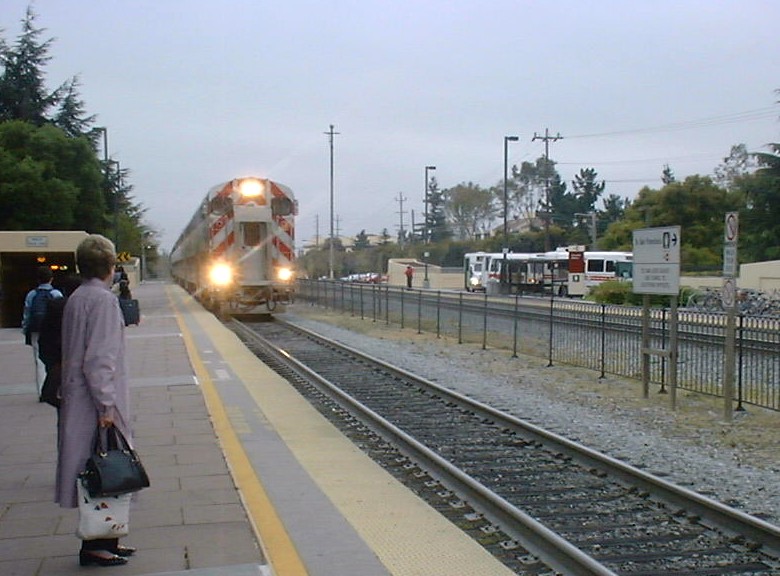 CaltrainNext morning our friends drove us to the Palo Alto Caltrain station, quite close. I went to buy Caltrain tickets to San Francisco and was offered senior citizens rate, which I accepted of course. Only $2 per person! incredible. The train we boarded was an express, bypassing many stations. In S.F. we found a new Muni (Municipal Street Railway) line right outside the Caltrain station. After asking at the station I bought one-day passes at $6 each, which may have been a mistake as senior fares are only 35 cents. But convenience outweighs cost, at such times. Off we went on a Muni N-Judah car to Embarcadero station. It's a short walk to the Ferry building, but that's being refurbished. We looked for and found the Amtrak office, behind a smaller building. The ticket clerk sweated blood to get us a ticket on the bus to Emeryville to board the Auburn train. It seems rail passes issued by VIA rather than Amtrak cause problems (especially if you don't know how to do it). We arranged to leave our baggage at the office. Waited for F-line historic trolley: it turned out to be packed but we boarded nevertheless. Read signs about "È pericoloso sporgesi" ("it's dangerous to lean out") and discovered that the car was from the Milan system. Alighted at Pier 39, heard seals so tracked them down by sound, to photograph them. Walked along to the Cannery, which was run down compared to our previous visit (decades ago). Had coffee and shared a muffin. Found the cable-car terminus and turntable, and had to wait quite a while as additional cars ran down, apparently by gravity, and waited in line. Was the cable itself actually running? We boarded a car, which eventually moved off, to Stockton St. and the cable-car museum. We had a good look at the winding engines for the cables. Then Dewi went down to the basement, to see (through glass) the enormous pulley wheels set at angles which direct the cables in the correct direction into the conduits under the street. Re-boarded car to Union Square, which was all dug up. Walked to Britex fabric