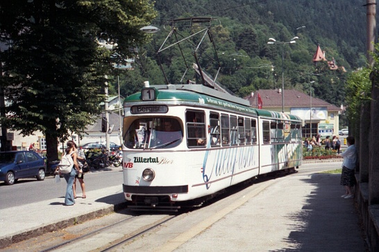 The no. 1 tram on its terminal loop at the foot of the Hungerburg funicular, Innsbruck