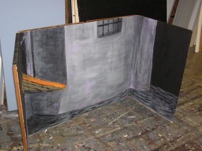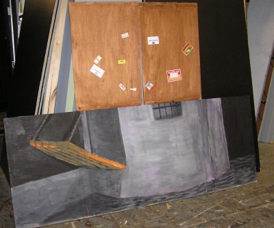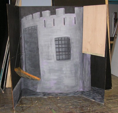 up on the right hand side of the photo. In this picture, the scenery is not free-standing but is propped up against the black flats behind it. |