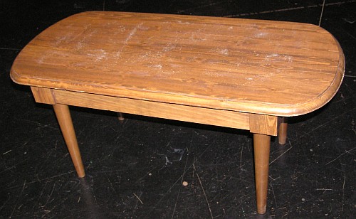 In the play Out of Sight, Out of Murder, a character has to run and jump onto a normal-looking coffee table. If you try and do this to a normal coffee table, the table will probably either skid along the floor or it will bounce or collapse. | ||