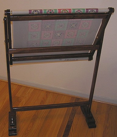 The fabric being embroidered can be rolled up or down so that long pieces can be worked on. It cannot be rolled side to side, so the Bayeux tapestry cannot be easily copied, however! | |