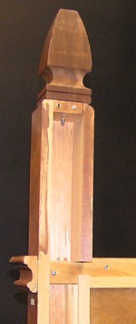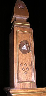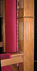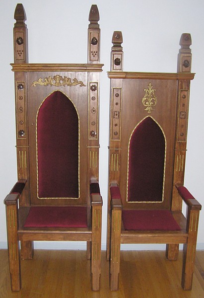 Although apparently of solid wood, the thrones are in fact constructed mostly of 1"x3" pine. Building them from pieces meant that cross-pieces and bracing could easily be added without mortice and tenon joints. The components are glued and screwed together, using, of course, Robertson-head square-socket screws. |