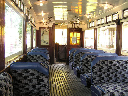 Downstairs interior of London tram 1858