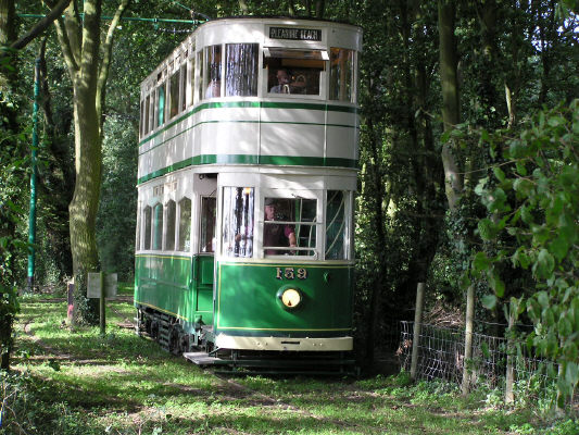 Blackpool tram at end of line, in the woods