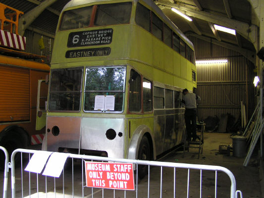 Portsmouth trolleybus being restored: Route 6 is still a bus route running along Clarendon Road, where we were staying in Southsea.