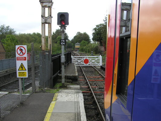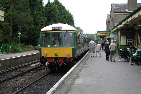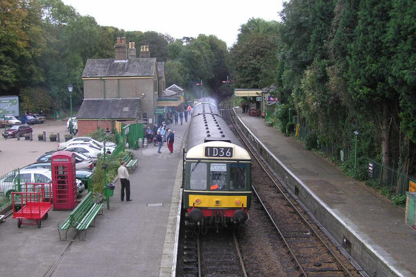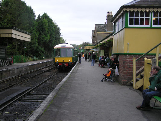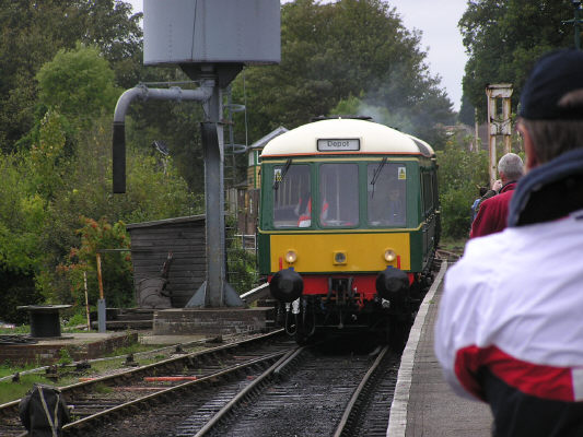 Diesel railcar seen from footbridge, New Alresford, MHR