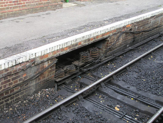 Signal wires entering channel to signal box, Ropley, Watercress Line