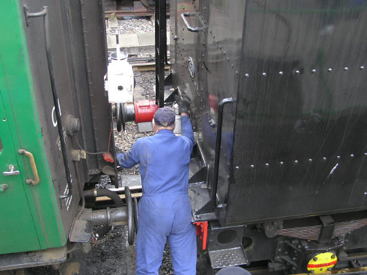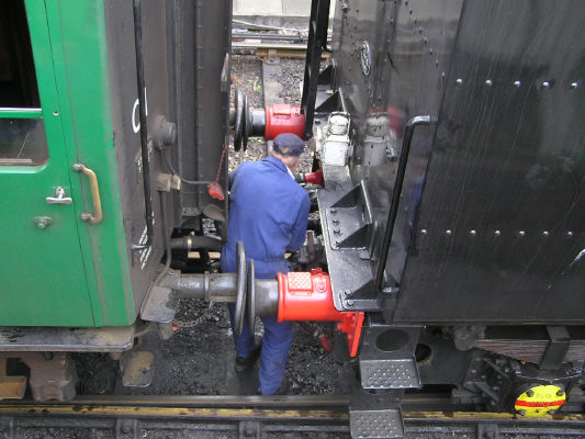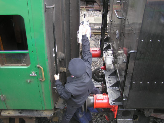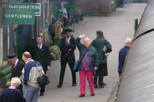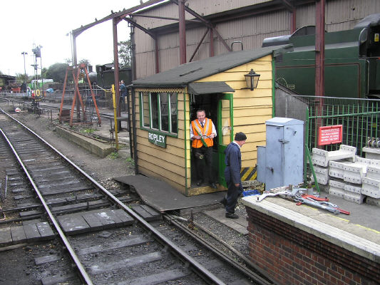 Signalman returning with full coal scuttle, Ropley, Watercress Line