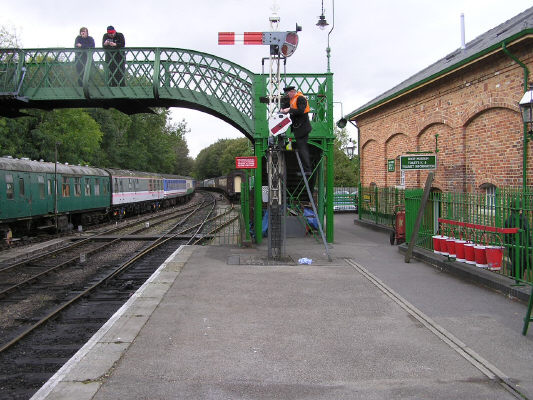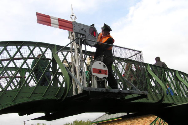 Cleaning lamp and replenishing oil in "home" signal, New Alresford