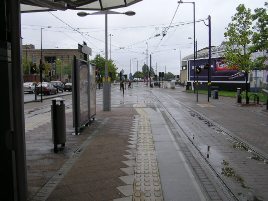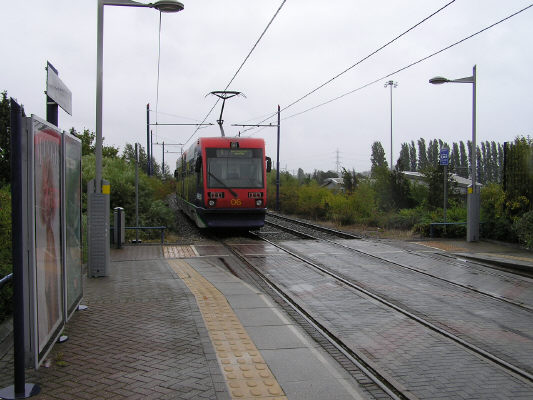 Martin and I visited Birmingham specifically to ride on the Midland Metro tram system. However, unbeknown to us, on the previous night vandals had broken into an electrical sub-station, poured petrol around, and set light to it. So no trams were operating beyond Wednesbury: we had to transfer to a bus at that point, and the heavy traffic made us realize how useful the tram must be, riding on its own right-of-way.