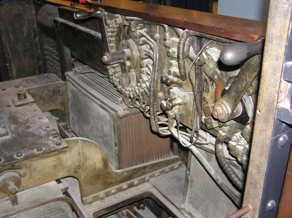 London's Transport museum: controller of C&SL loco, panels off showing interior of speed control