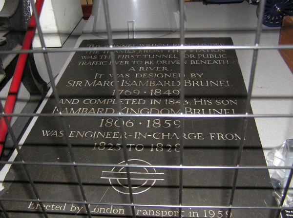 LT Museum Warehouse at Acton: plaque from Thames Tunnel, two Brunels