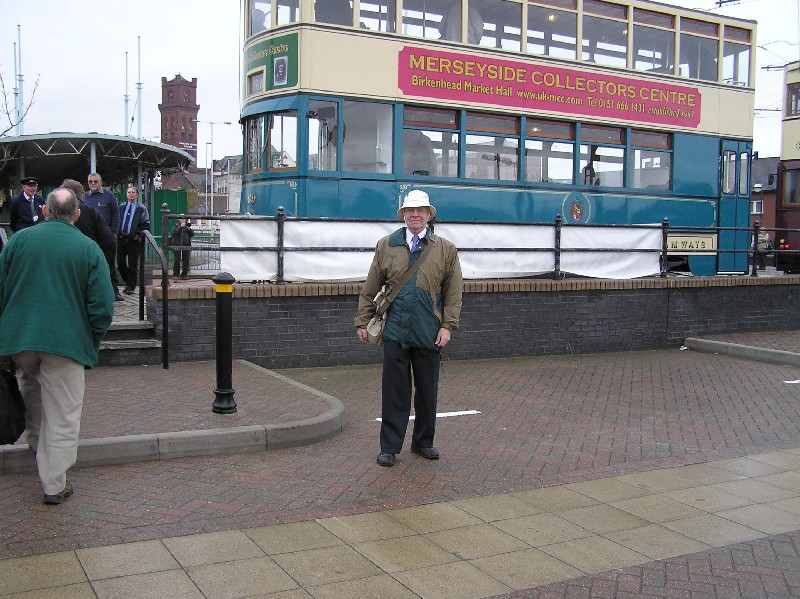 Dewi in front of Hong Kong-built tram at Woodside ferry terminal, Birkenhead Photo P1010007:Date 10/24/2009