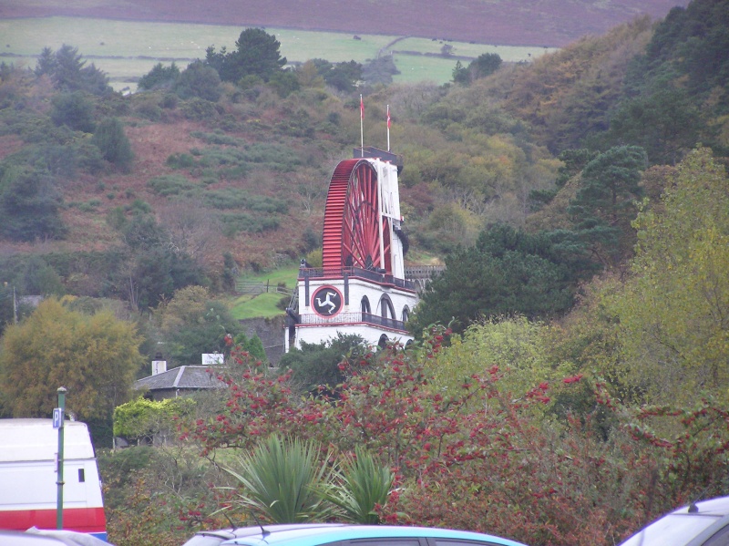 The biggest waterwheel in the world: "Lady Isabella" in Laxey (yes, the Triskelion IS backwards). Photo P1010118:Date 10/26/2009