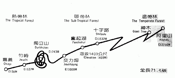An account of a railway journey to the mountain resort of Alishan, Taiwan,