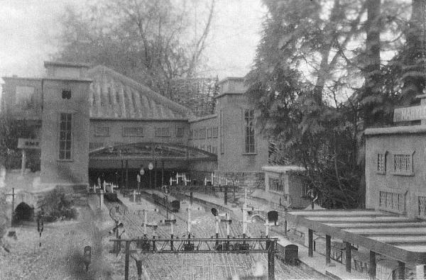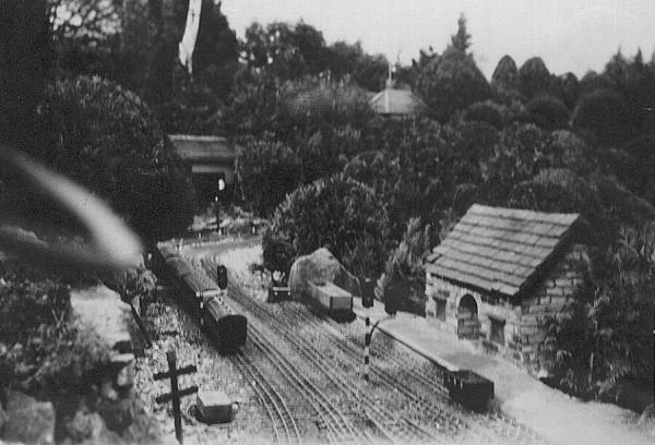Bekonscot station. There were no trains running at that time, so I placed my folding camera on the tracks under the station bridge.