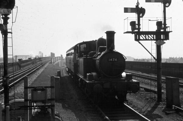 Greenford Central Line (tube) and WR station: loco no. 1474 on auto-train to Ealing