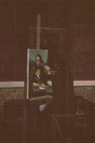 Artist making a copy of the Mona Lisa in the Louvre.