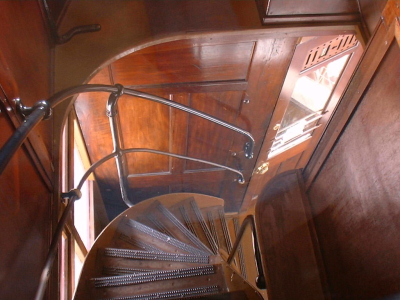 ![]() From the upper deck we can look down the staircase of the Mumbles tram. The wood work was beautifully panelled.: photo DSCF0174, 11/07/2000 This page last updated on 01/21/2012 16:28:44 |
