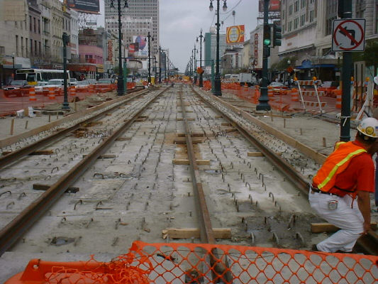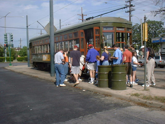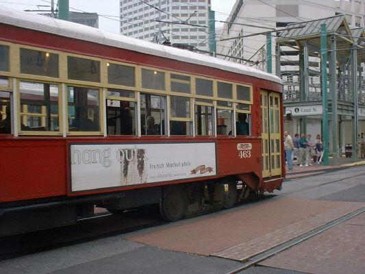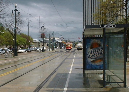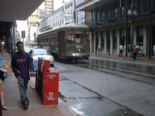 soaked in two ways. The Canal Street trolley drifted towards us and we tried to