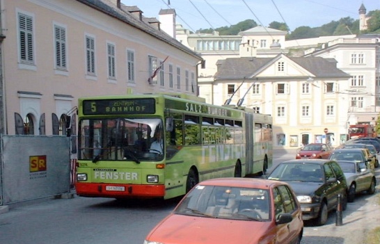 Trolleybus in front of Mozarts house, Salzburg