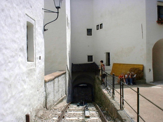 The "private" funicular used to bring materiel into the fortress (Festung) in Salzburg