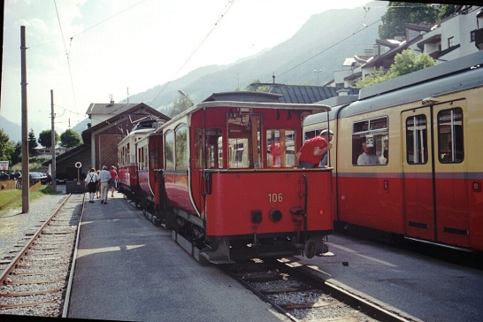 Trailer cars of "Nostalgie" tram-train at Fulpmes, Stubaitalbahn, Innsbruck