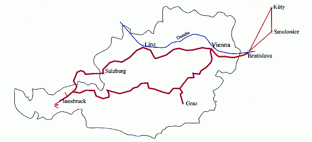 Into SlovakiaOnce the "Albatross", a huge black (or maybe very dark blue) 4-8-2 loco, was attached, we had a very fast run into Slovakia. One thing we'd forgotten about steam trains, and especially with hard-working locomotives, was that in addition to the smoke, tiny particles of soot and coal came in through the windows! We were forever dusting ourselves off.