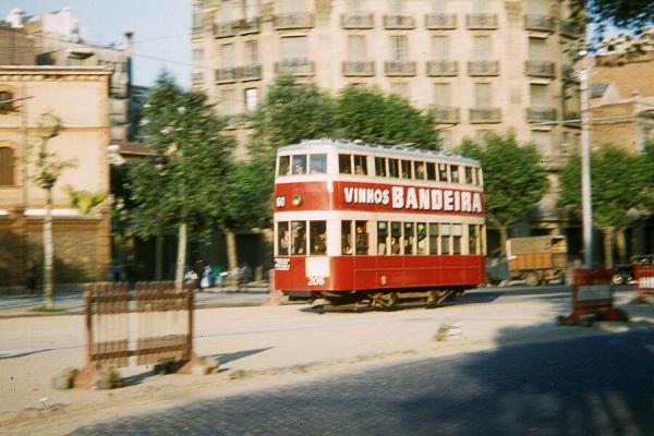 Double-deck 4-wheel tram no. 205 on route 60, Barcelona. [2] Photographed in Pg. de St. Joan entering at Pça de Tetuan. [2] Car is from the second batch of d/d 194-208