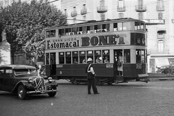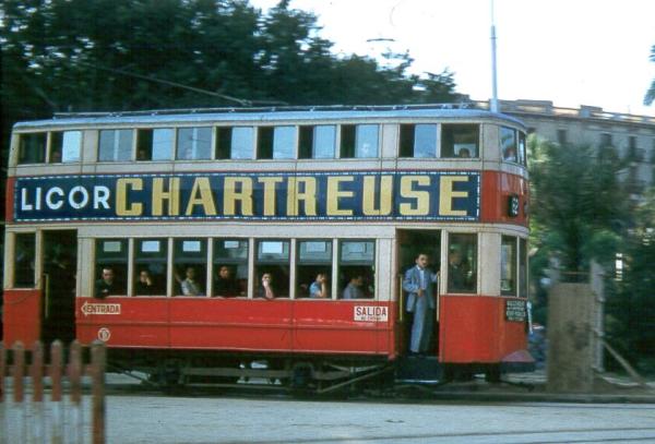Double-deck 4-wheel tram on route 62, P. Tetuan, Barcelona